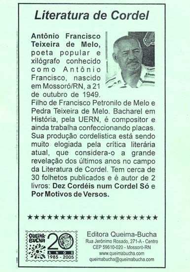 Inclui breve biografia do autor. Coleção: (Queima-Bucha de Cordel). |