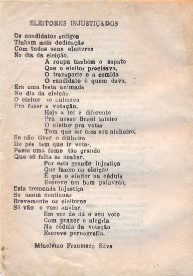 Na contracapa, poesia do autor: Eleitores injustiçados. |