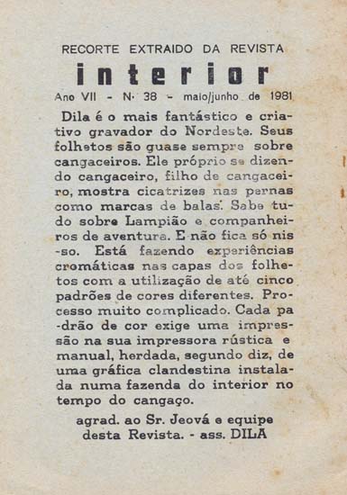 José Cavalcanti e Ferreira Dila; editor Valdenicio Soares da Silva; xilogravura do autor. -