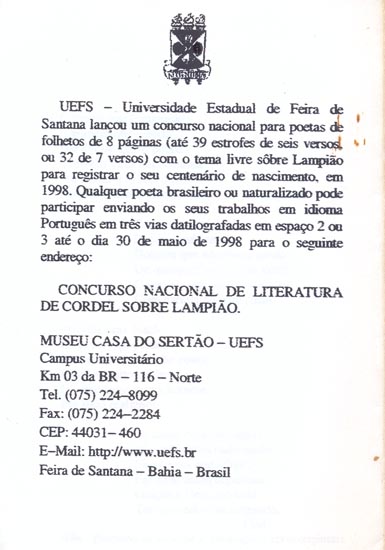 Coleção:(Folhetos de Feira (Cordel) - 1).