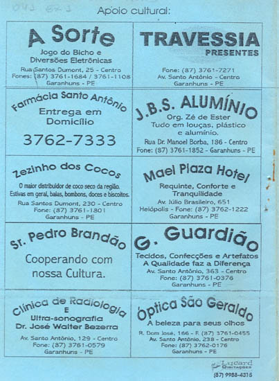 Este folheto foi doado pela Coordenadoria de Artes Cênicas da FUNDARPE. |